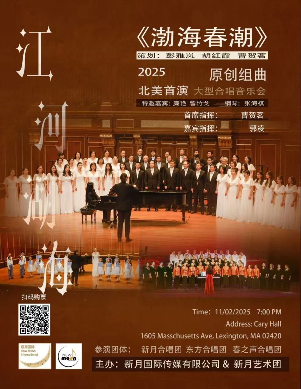 2025年深秋,“江、河、湖、海”大型原创合唱组曲之《渤海春潮》将跨越重洋,在波士顿的舞台上,为您澎湃奏响。